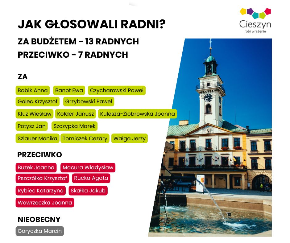 Szczegóły przyszłorocznego dokumentu wraz z autopoprawkami dostępne są w na stronie internetowej cieszynmiasto.esesja.pl , w punkcie k) uchwalenie budżetu miasta Cieszyna na 2026 rok, pod linkiem (link zewnętrzny) https://cieszynmiasto.esesja.pl/posiedzenie/32a68fd1-e9c4-4