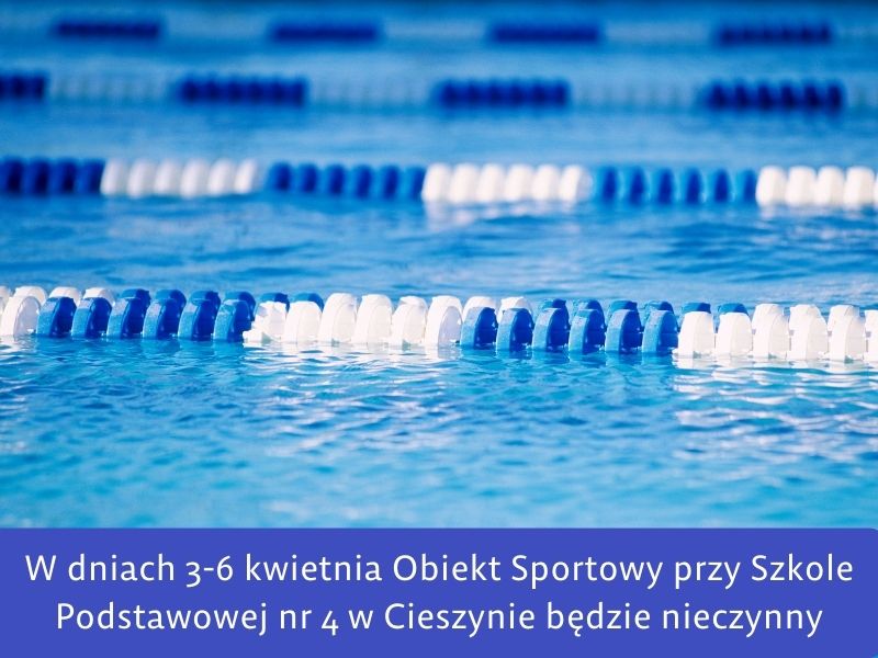 Uprzejmie informujemy, że w dniach 3-6 kwietnia 2026 r., podczas Świąt Wielkanocnych, Obiekt Sportowy przy Szkole Podstawowej nr 4 w Cieszynie będzie nieczynny.