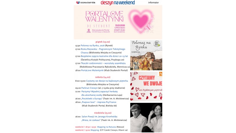 Cóż to będzie za weekend! Wystawy, spektakle, a na wieczór zabawa w klubie studenckim! Czy w Cieszynie można się nudzić? W żadnym wypadku!