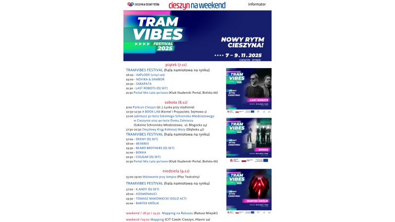 Bardzo muzyczy weekend listopada na cieszyńskim rynku! Pierwszy taki festiwal w naszym mieście. Zapraszamy na TramVibes i inne wydarzenia!